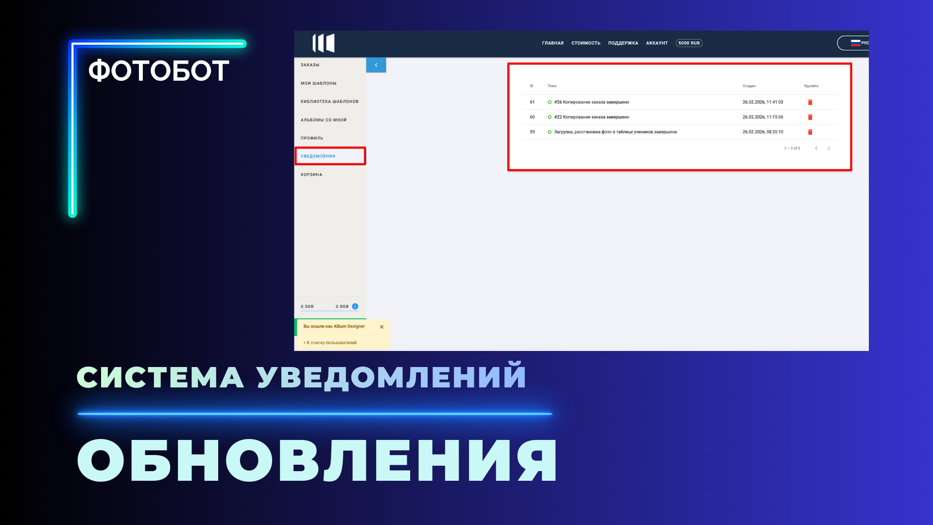 Новая система уведомлений поможет не пропускать информацию по заказам, событий и важных обновлений.